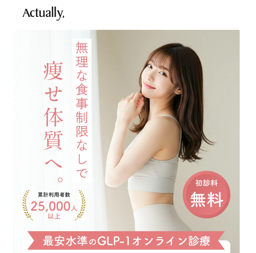 そこで今注目されているのが、医師の管理のもとで行うGLP-1ダイエットです。食欲を自然に抑え、無理なく体重を落とせることから、多くの女性に支持されています。